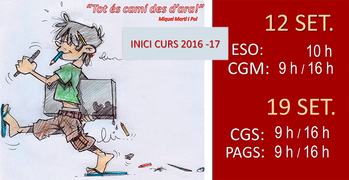 MATRÍCULA EXTRAORDINÀRIA SETEMBRE 2016- 17 CICLES FORMATIUS – Presentació de sol·licituds: 8 – 12 de set. – Publicació llistes i matrícula: 15 i 16 set. –…